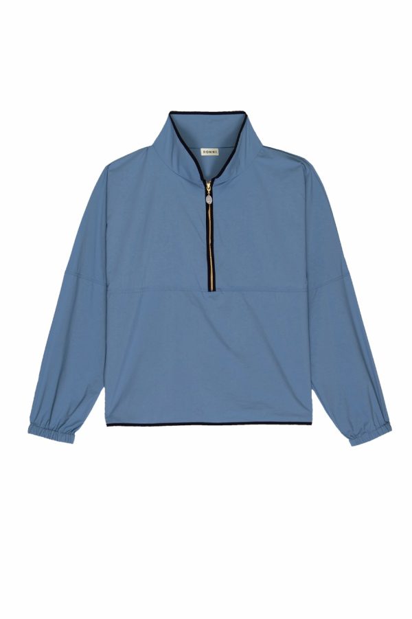 nylon 1/2 zip pullover with front pocket, rectangular freshwater pearl, & contrast binding