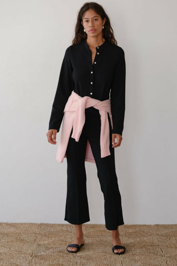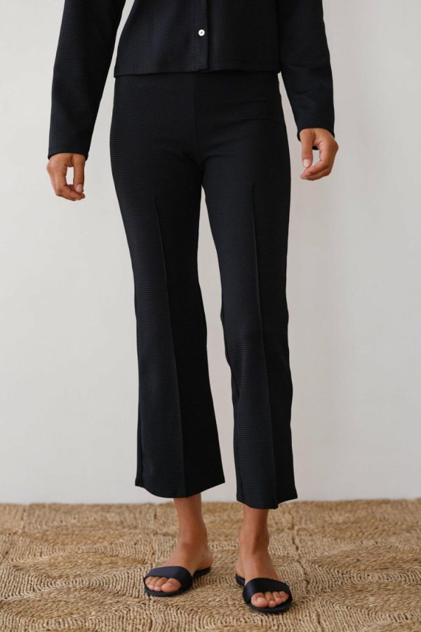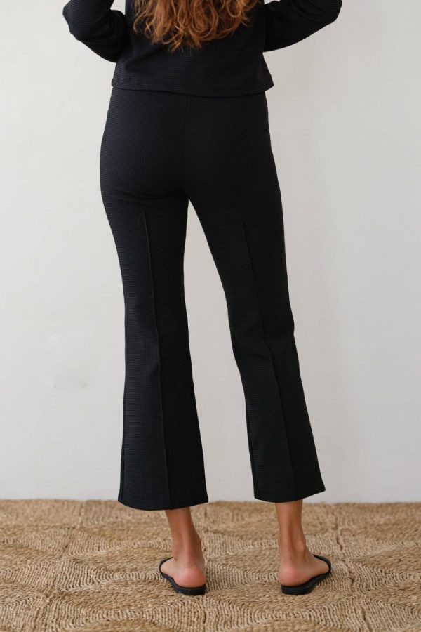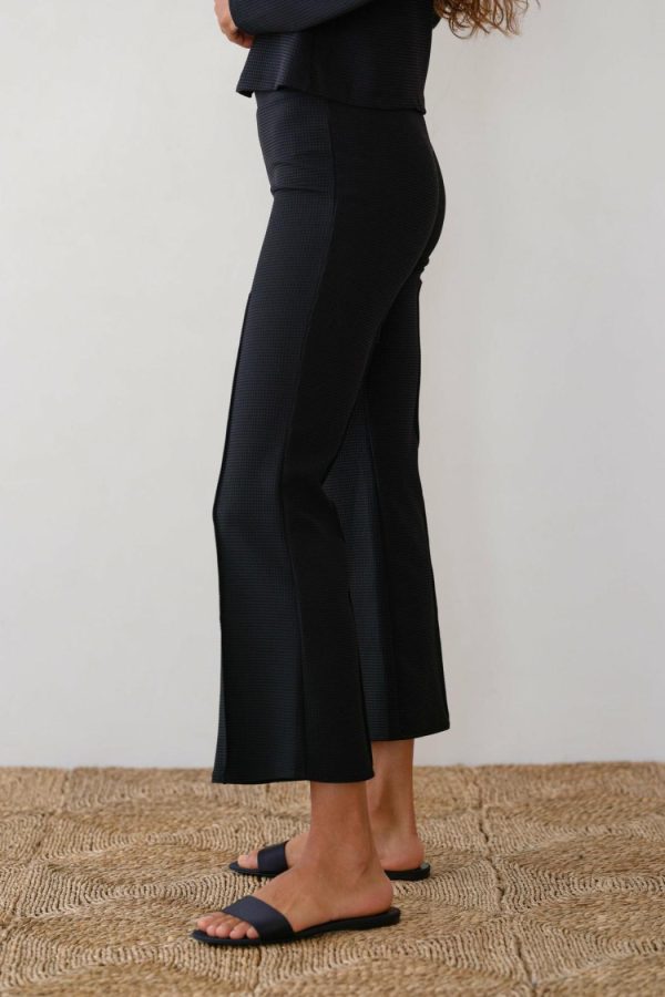 Crafted from mid-weight waffle weave fabric with stretch for comfort and ease. A fitted pant, with a classic kick flare, cropped length, and pintuck detail on the front and back.