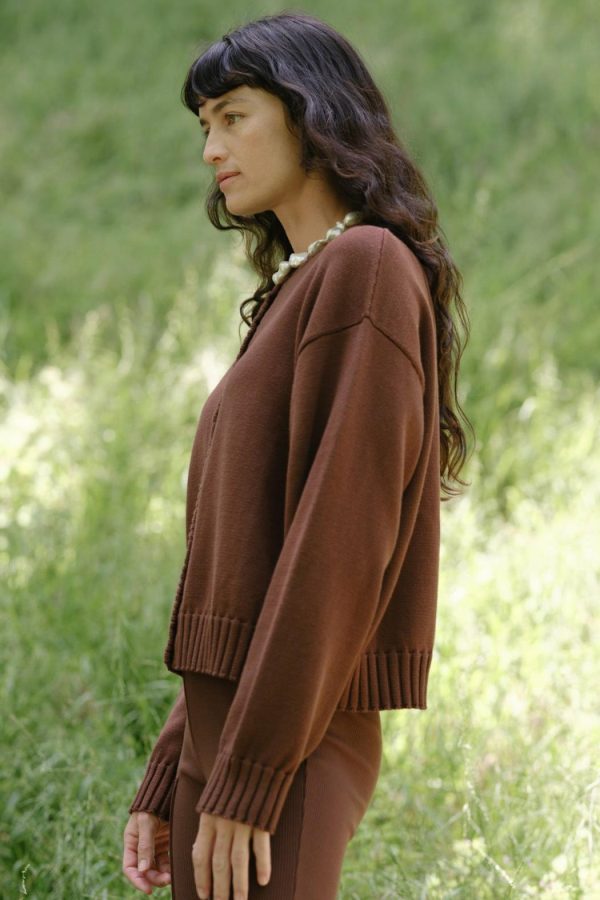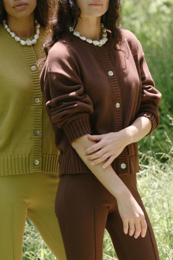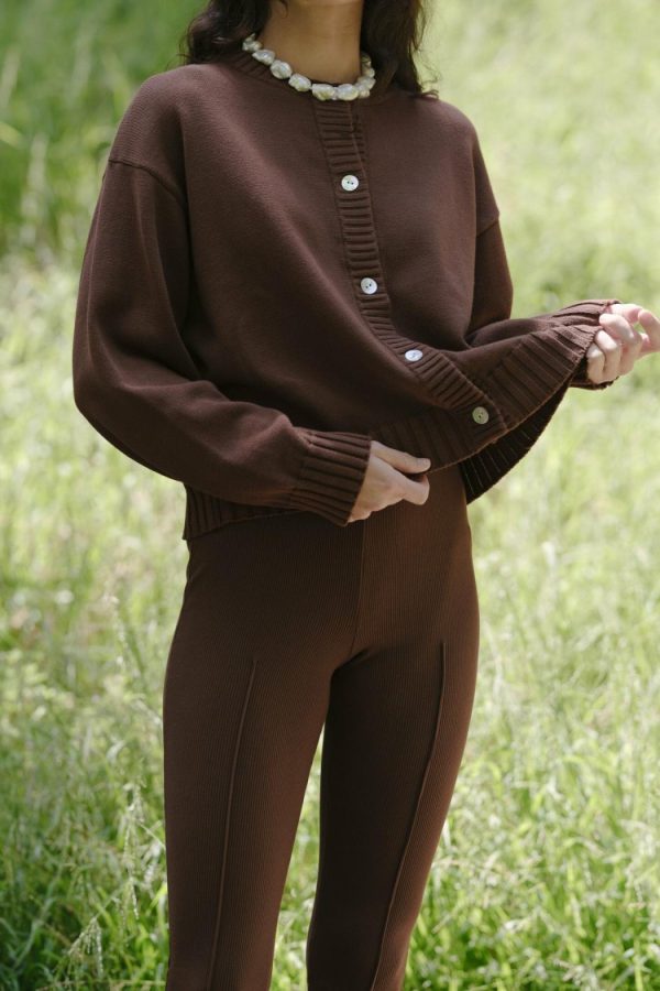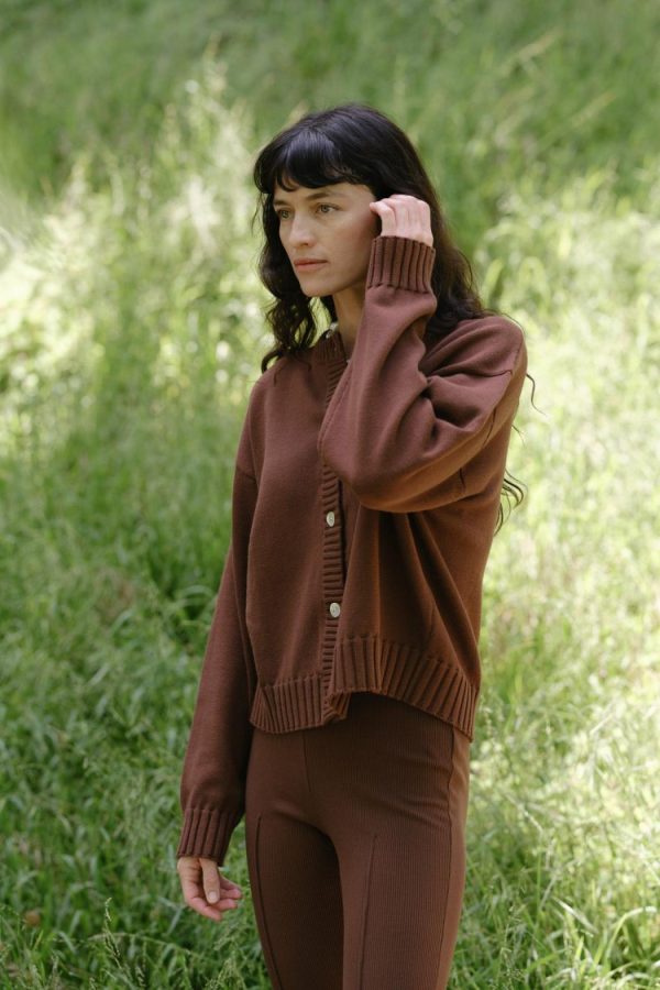 The Cotton Knit Cardigan is crafted with 100% Organic Cotton, featuring a slightly oversized fit, mother of pearl buttons and ribbed edges.