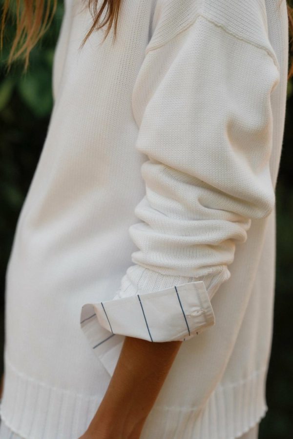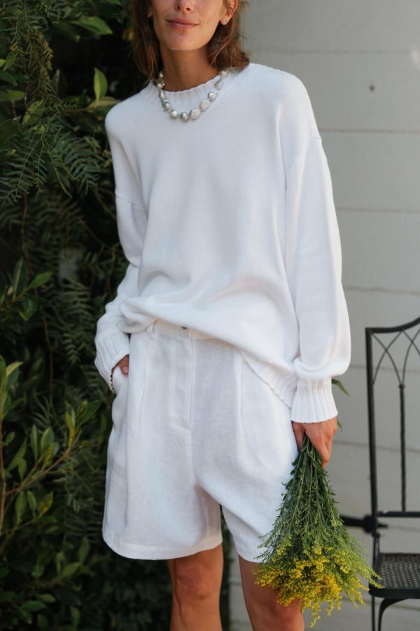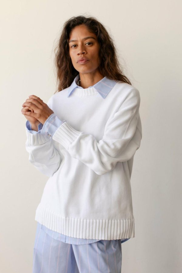 The Cotton Knit Crewneck is crafted with 100% Organic Cotton, featuring a slightly oversized fit and ribbed edges.