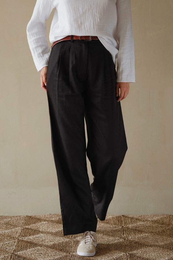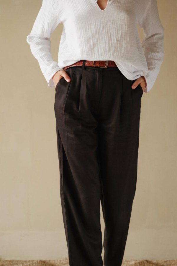 The Pleated Trouser is crafted with 100% Lyocell Twill, featuring a relaxed fit, mother of pearl buttons, belt loops, pockets and pleats.