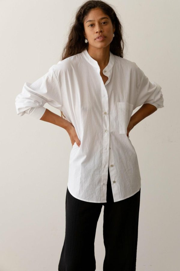 The Sandwash Mandarin Shirt is crafted from our lightweight 100% Cotton Sandwash fabric. Featuring, a relaxed fit, mother of pearl buttons, mandarin neck, and a left chest pocket.